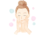 Rubbing skincare products too hard in an attempt to make them absorb* into the epidermis is not a good idea. The correct way to care for your skin is to gently massage the product onto the surface so it reaches every corner of the stratum corneum. For moisturizing and protective lotions and creams, use your bare hands to apply them gently, then use your palms to cup your face to spread them evenly. Additionally, applying sunscreen and makeup primers gently without using too much pressure is also important.