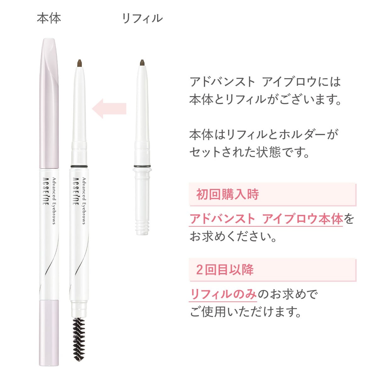 นี่คือรีฟิลสำหรับ Advanced Eyebrow โดยเฉพาะ ★หากคุณใช้เป็นครั้งแรก โปรดซื้อ Advanced Eyebrow รุ่นหลัก (รีฟิล + ที่วาง) ก่อน ให้ความรู้สึกเหมือนเขียนคิ้วจริงมากกว่าการวาด บริเวณที่ไม่มีขนและปลายคิ้วจะดูสวยงามตลอดวัน ดินสอเขียนคิ้วนี้ช่วยให้คุณเขียนได้ง่ายๆ เพียงแค่แตะเบาๆ ให้ผลลัพธ์ที่เป็นธรรมชาติแม้ในบริเวณที่ไม่มีขน ติดทนนาน 1-2 นาที กันน้ำ กันเหงื่อ และทนต่อความมัน ・รุ่นหลัก (รีฟิล + ที่วาง) 3 สี / 3,300 เยนต่อชิ้น (ราคาปกติ 3,000 เยน) ・รีฟิล 3 สี / 2,200 เยนต่อชิ้น (ราคาปกติ 2,000 เยน) *สินค้าหลักจำหน่ายเป็นชุดพร้อมรีฟิลและที่วาง รีฟิลไม่สามารถใช้เดี่ยวๆ ได้ โปรดซื้อสินค้าหลักในครั้งแรก *1 สำหรับเครื่องสำอางที่ติดทนนานยิ่งขึ้น คลิกที่นี่เพื่อซื้อผลิตภัณฑ์หลัก Advanced Eyebrow ≫ ■ ใช้เทคโนโลยี PV ที่ป้องกันไม่ให้เม็ดสีสัมผัสกับผิวโดยตรง *สีที่แสดงบนหน้าจอของคุณอาจแตกต่างจากสีของผลิตภัณฑ์จริงเล็กน้อย ขอขอบคุณสำหรับความเข้าใจของคุณ