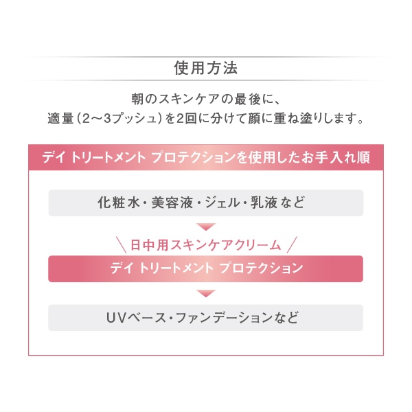 หลังจากทาโลชั่นในตอนเช้าแล้ว ให้ใช้ผลิตภัณฑ์ในปริมาณที่เหมาะสม (2-3 ปั๊มสำหรับใบหน้า) ทาลงบนใบหน้าสองครั้ง