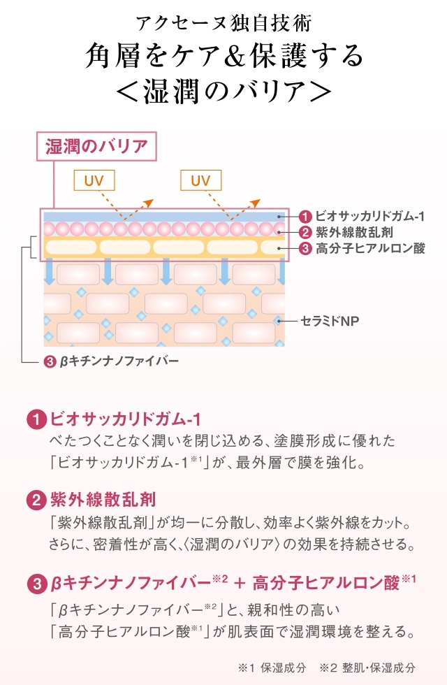 ส่วนผสมที่ช่วยปรับสภาพผิวและให้ความชุ่มชื้นอย่างเบต้าไคตินนาโนไฟเบอร์ จะช่วยให้ผิวที่หยาบกร้านเรียบเนียนขึ้น และปกป้องผิวจากความเสียหายที่เกิดจากรังสียูวีและความแห้งกร้าน