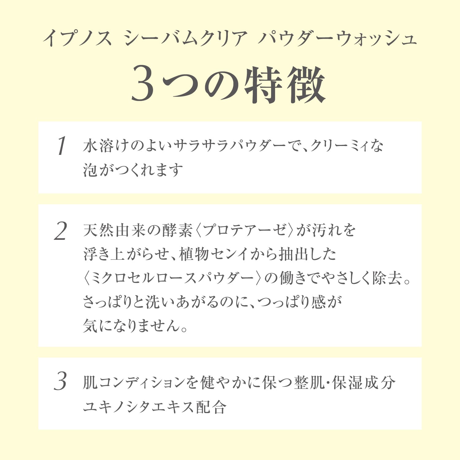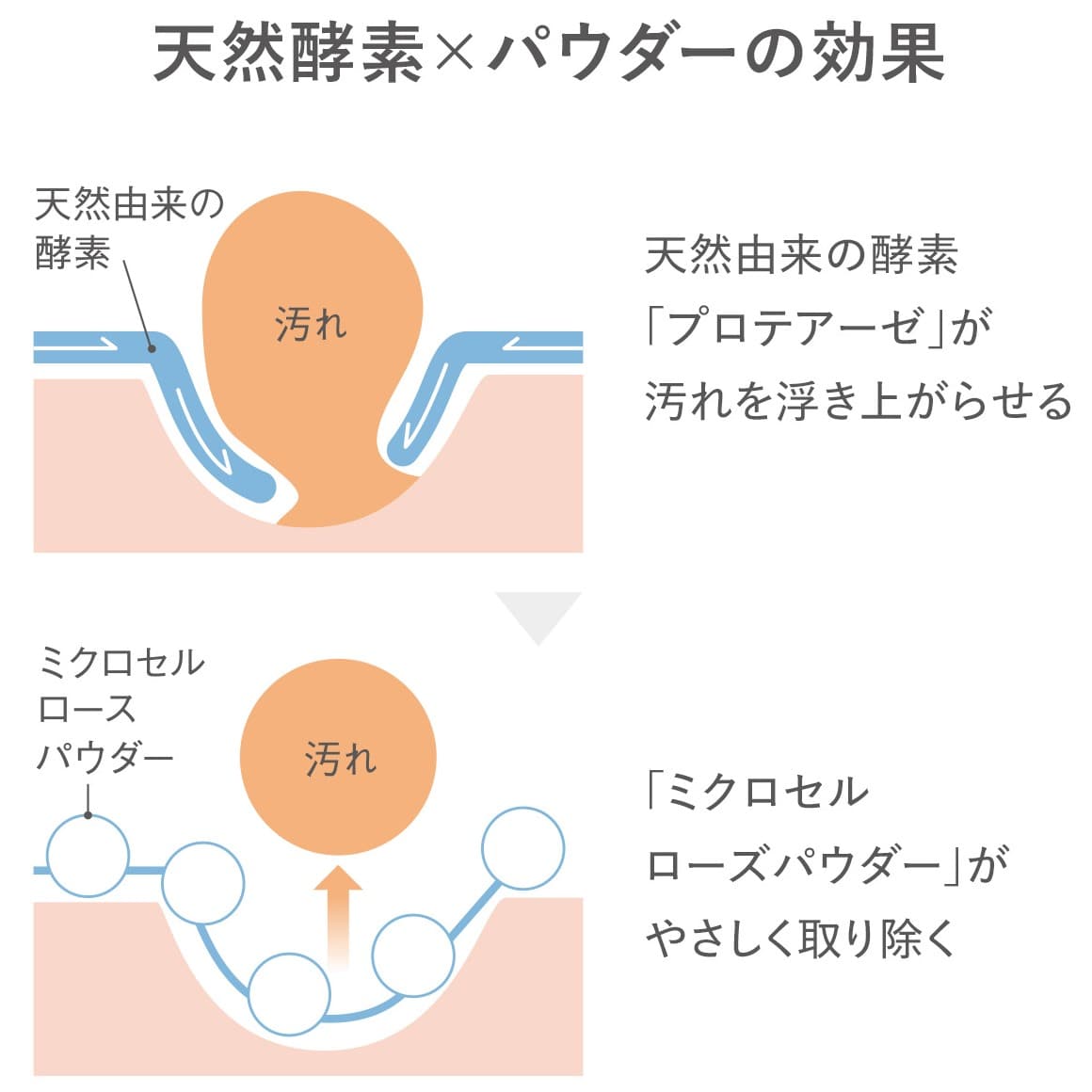 เอนไซม์โปรตีเอสจากธรรมชาติช่วยยกสิ่งสกปรก ในขณะที่ผงไมโครเซลลูโลสที่สกัดจากเส้นใยพืชช่วยขจัดสิ่งสกปรกเหล่านั้นอย่างอ่อนโยน ทำให้ผิวรู้สึกสดชื่นโดยไม่รู้สึกตึงผิว