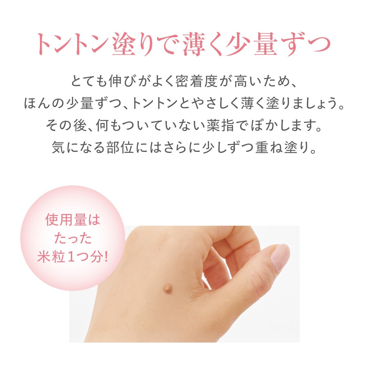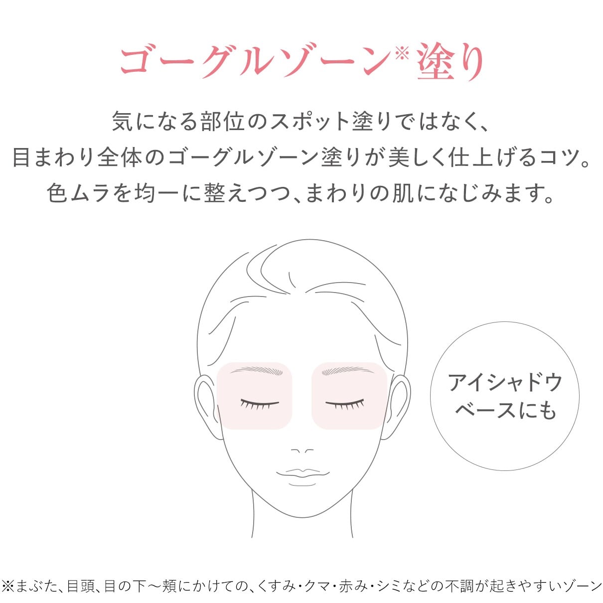 รองพื้นเฉพาะจุดนี้ช่วยปกปิดปัญหาผิวต่างๆ ได้อย่างเป็นธรรมชาติ เพียงแค่ทาในปริมาณเล็กน้อยให้ทั่วบริเวณรอบ ดวงตา (บริเวณรอบดวงตา *2 ) ซึ่ง เป็นบริเวณที่มักเกิด ปัญหา ต่างๆ มากมาย *1 การทาบริเวณรอบดวงตาในตอนเช้าจะช่วยลดเลือนความเหนื่อยล้าที่มักปรากฏในตอนเย็น และป้องกันการเกิดริ้วรอย ทำให้ผิวของคุณดูสดใส สุขภาพดี และสวยงามทันทีที่ใช้ และคงความสวยงามนั้นไว้ได้นาน